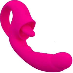 PODGRZEWANY WIBRATOR OBROTOWO POSUWISTY Z JĘZYCZKIEM STYMULUJE ŁECHTACZKĘ
