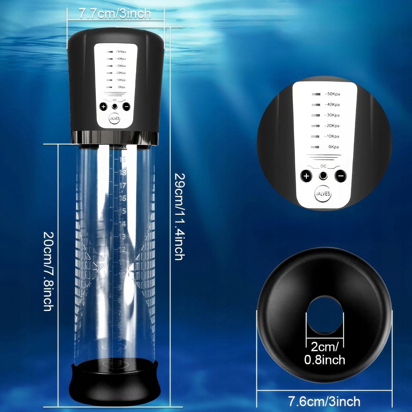 LeLex Kiera to pompka zaprojektowana z myślą o wygodzie użytkowania, trwałości oraz pełnej kontroli podczas treningu. Urządzenie wykonano z wysokiej jakości materiałów, takich jak ABS oraz silikon, które zapewniają bezpieczeństwo i komfort użytkowania. Transparentny cylinder umożliwia obserwowanie efektów w trakcie korzystania z urządzenia, co zwiększa kontrolę nad całym procesem. Silikonowa uszczelka dopasowuje się do kształtu ciała i pomaga utrzymać odpowiednią szczelność podczas pracy pompki. Urządzenie posiada kilka poziomów intensywności, dzięki czemu można dopasować działanie do własnych preferencji. Dodatkowo zawór szybkiego spuszczania powietrza pozwala natychmiast zmniejszyć ciśnienie, zwiększając bezpieczeństwo użytkowania. Wbudowany akumulator ładowany przez USB sprawia, że urządzenie jest wygodne w codziennym użyciu. Całość tworzy konstrukcję łączącą praktyczną funkcjonalność urządzenia oraz komfort i bezpieczeństwo użytkowania.