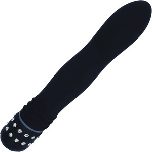 ELEGANCKI CZARNY WIBRATOR Z OZDOBNYM DIAMENTEM MASAŻER DO ANALU I POCHWY